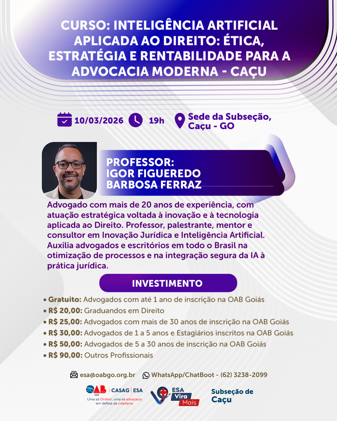 CURSO: INTELIGÊNCIA ARTIFICIAL APLICADA AO DIREITO: ÉTICA, ESTRATÉGIA E RENTABILIDADE - CAÇU