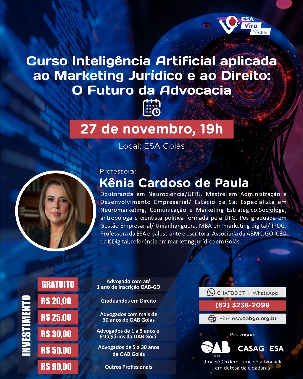 CURSO INTELIGÊNCIA ARTIFICIAL APLICADA AO MARKETING JURÍDICO E AO DIREITO: O FUTURO DA ADVOCACIA