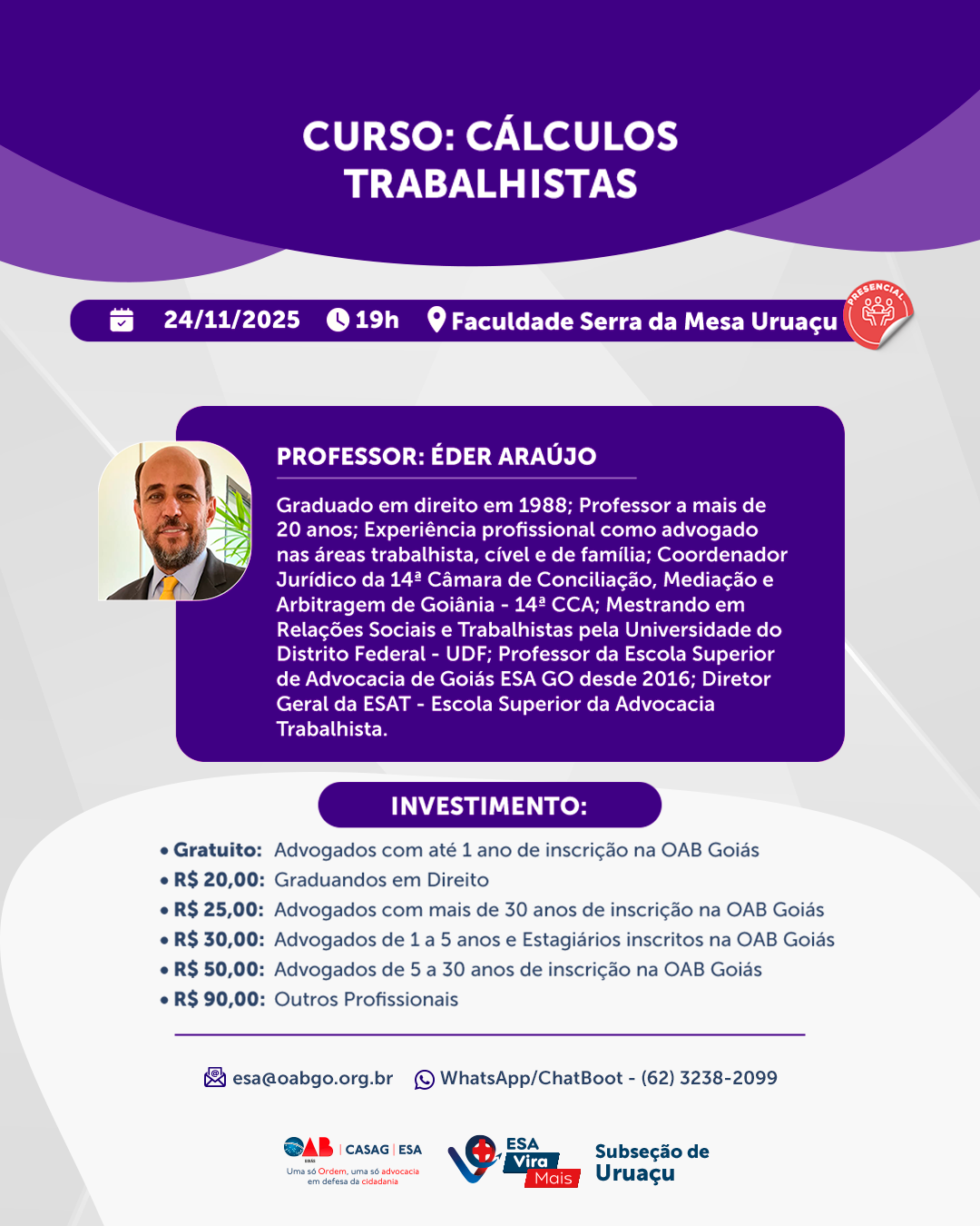 CURSO: CÁLCULOS TRABALHISTAS - URUAÇU