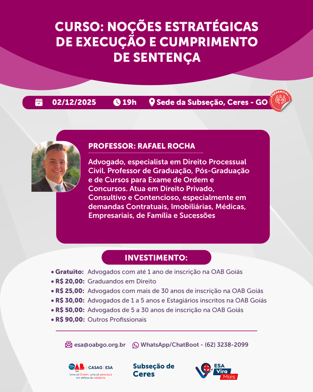 CURSO: NOÇÕES ESTRATÉGICAS DE EXECUÇÃO E CUMPRIMENTO DE SENTENÇA - CERES