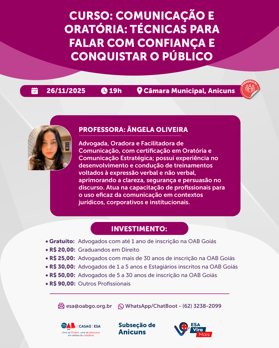 CURSO COMUNICAÇÃO E ORATÓRIA: TÉCNICAS PARA FALAR COM CONFIANÇA E CONQUISTAR O PÚBLICO - ANICUNS