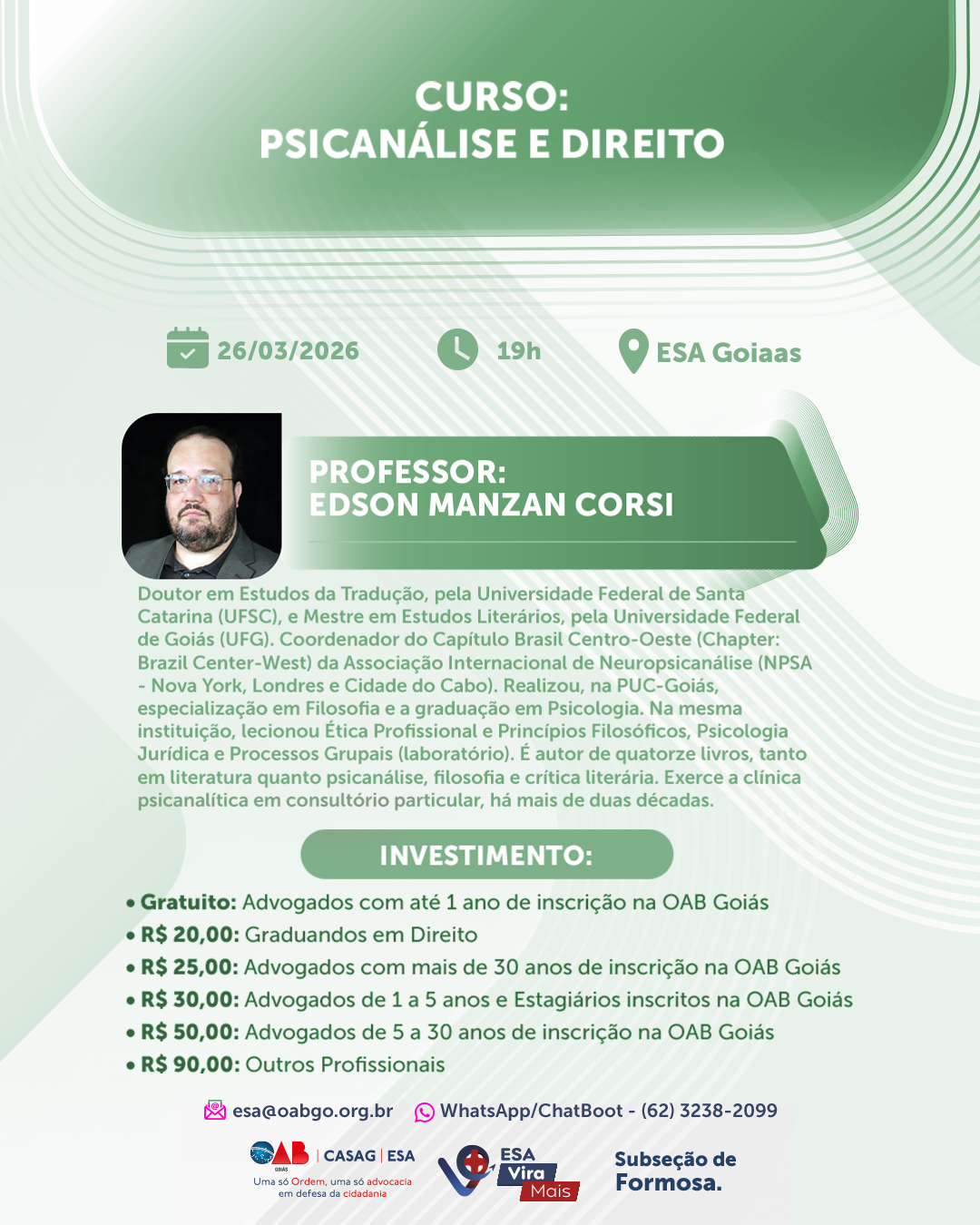 CURSO PSICANÁLISE E DIREITO: INTERLOCUÇÕES