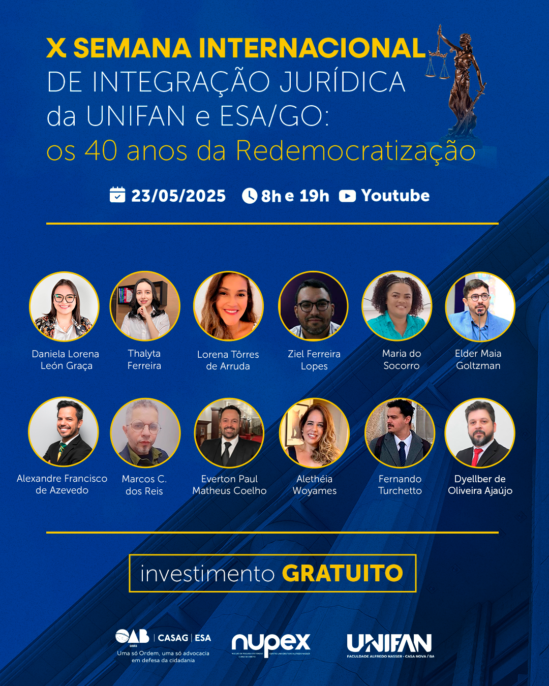 X Semana Internacional de Integração Jurídica da UNIFAN e ESA/GO: os 40 anos da Redemocratização.Data: 23/05/2025
