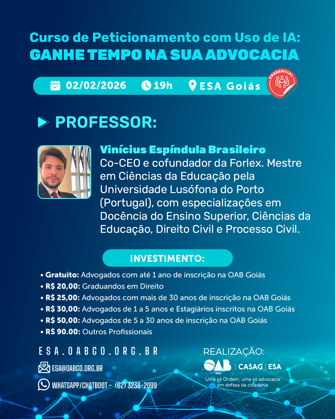 Curso de Peticionamento com Uso de IA: GANHE MAIS TEMPO NA SUA ADVOCACIAData: 02/02/2026