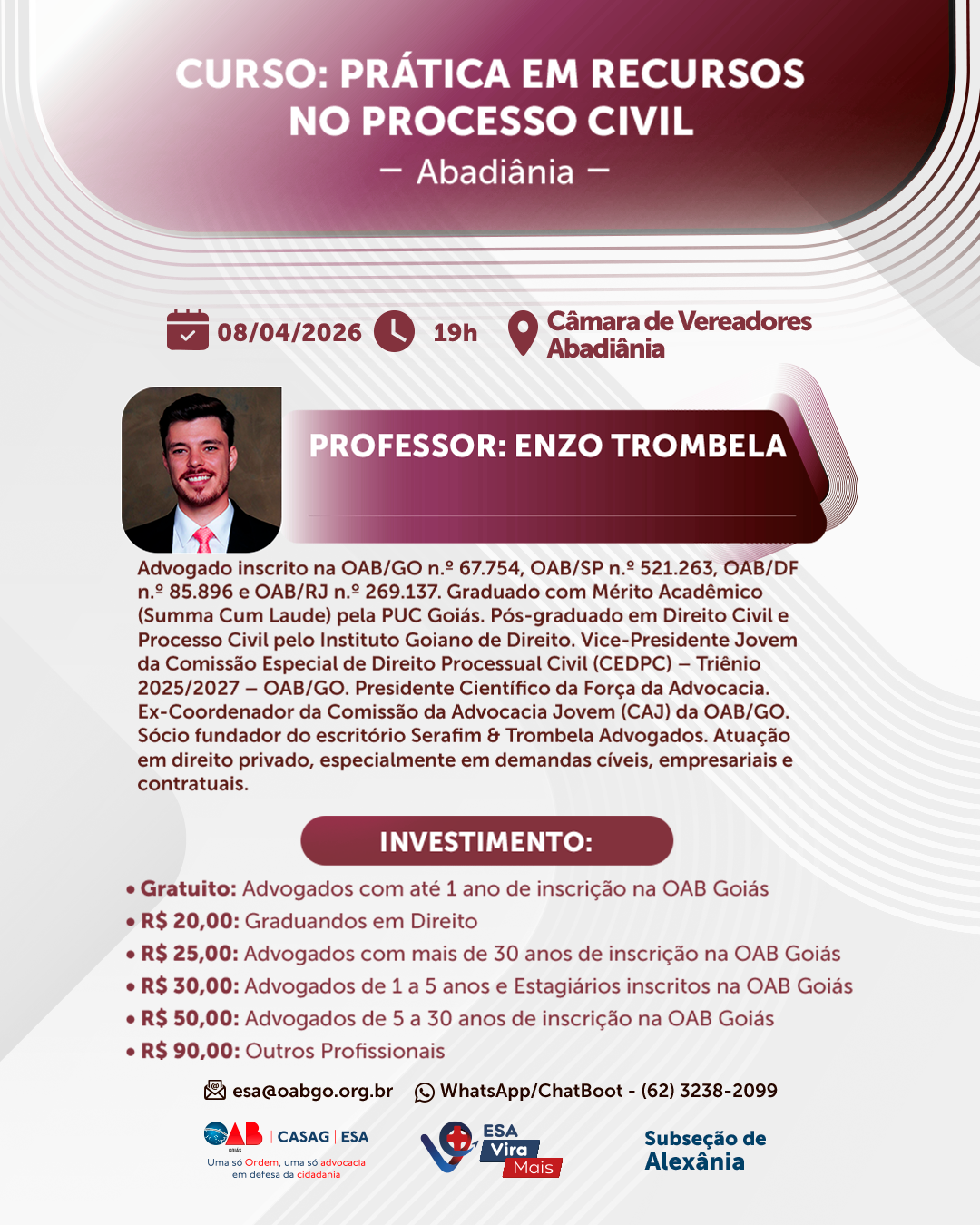 CURSO: PRÁTICA EM RECURSOS NO PROCESSO CIVIL - ABADIÂNIA