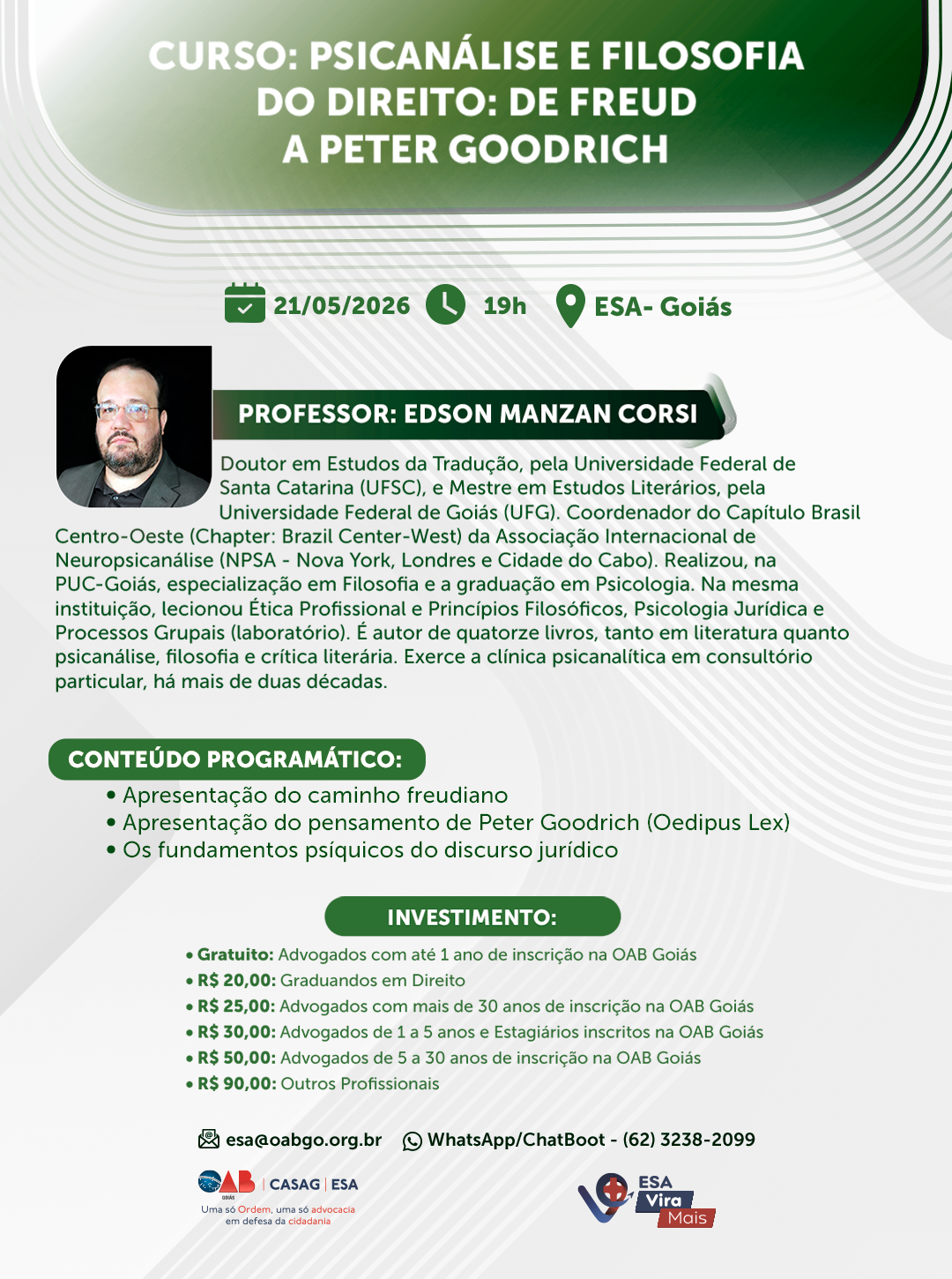 CURSO: PSICANÁLISE E FILOSOFIA DO DIREITO: DE FREUD A PETER GOODRICH
