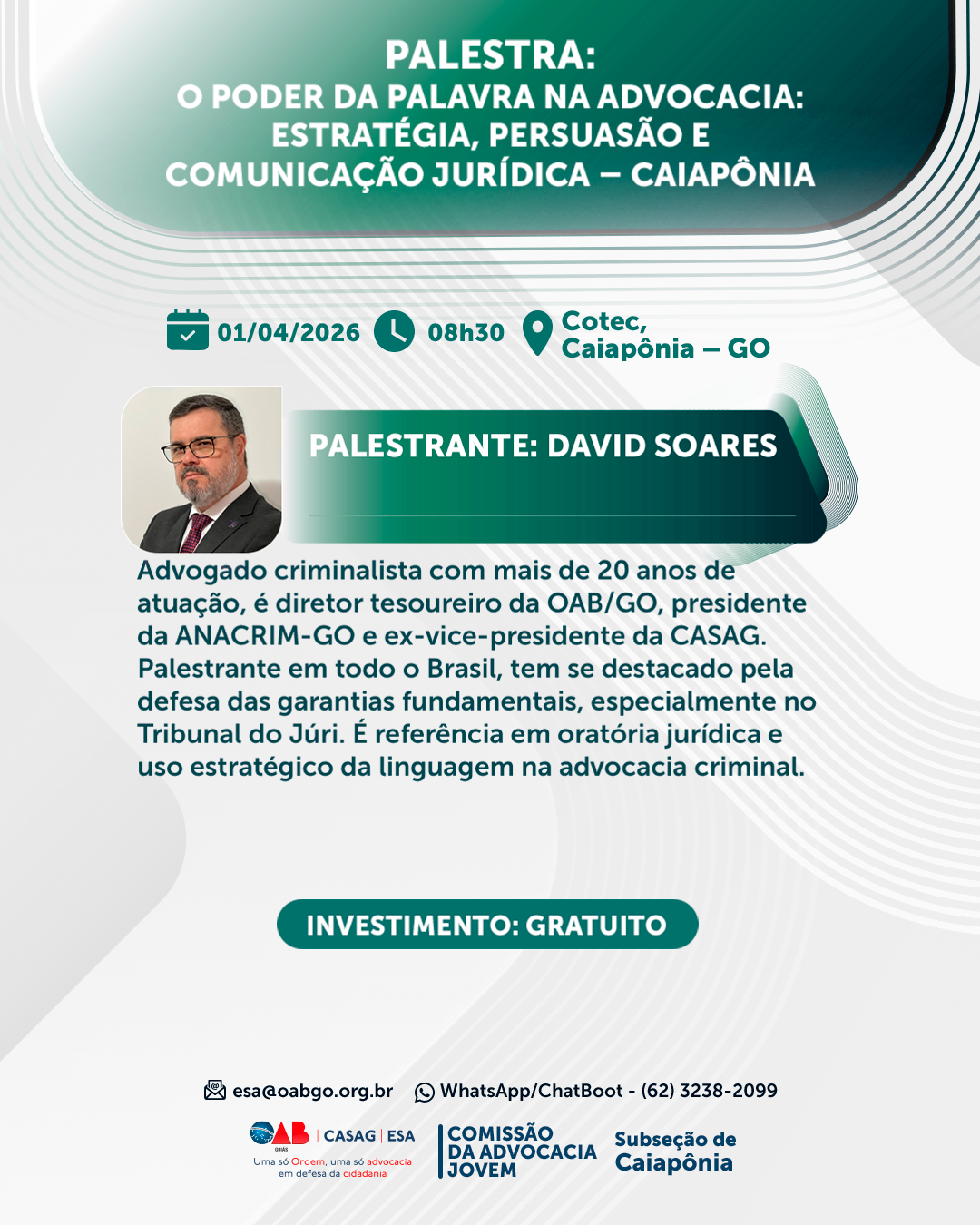 PALESTRA: O PODER DA PALAVRA NA ADVOCACIA: ESTRATÉGIA, PERSUASÃO E COMUNICAÇÃO JURÍDICA – CAIAPÔNIA
