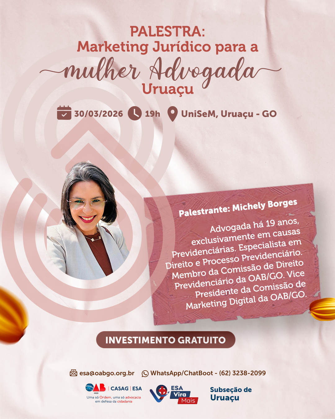PALESTRA: MARKETING JURÍDICO PARA A MULHER ADVOGADA – URUAÇU