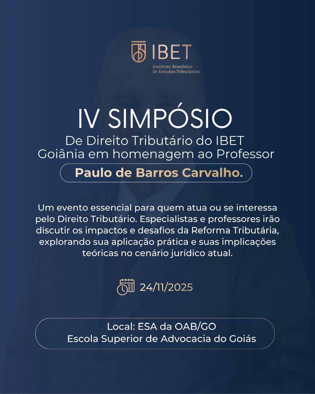 IV SIMPÓSIO DE DIREITO TRIBUTÁRIO DO IBET GOIÂNIA EM HOMENAGEM AO PROFESSOR PAULO DE BARROS CARVALHO